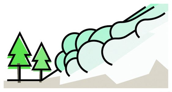 Situation: Lawine, die Waldgebiet bedroht