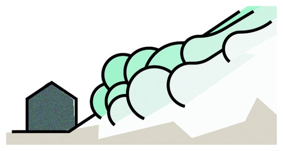 Situation: Lawine, die ein Gebäude bedroht